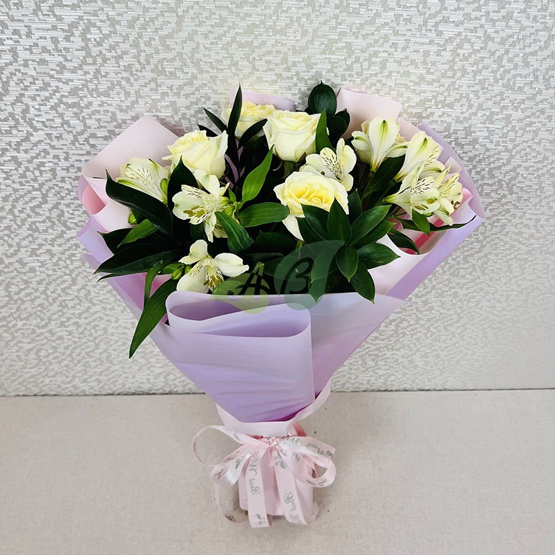 Состав и характеристики букета из альстромрий и роз"Свежесть":