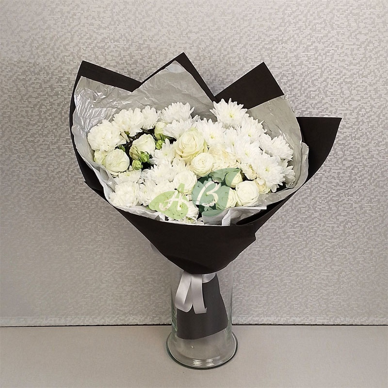 • Хризантема кустовая - 5 штук, цвет - белый;
