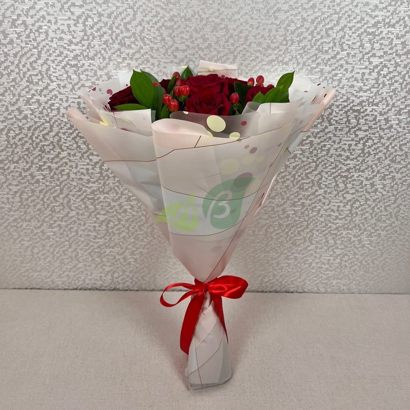 - Роза - 7 штук, цвет - красный;